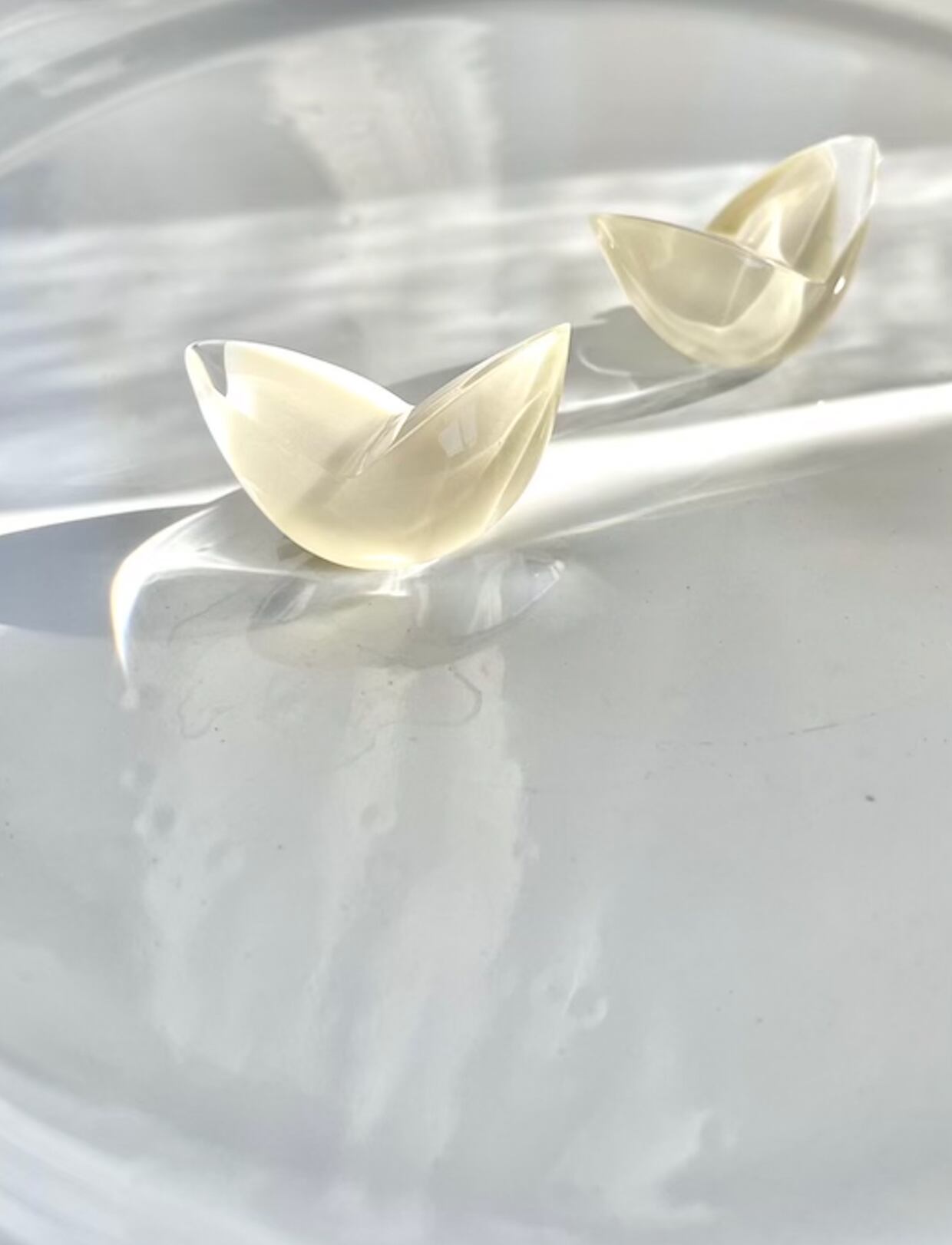 二人の感性から生み出される透明度、光の反射、フォルムの計算された繊細さが唯一無二のデザイン。